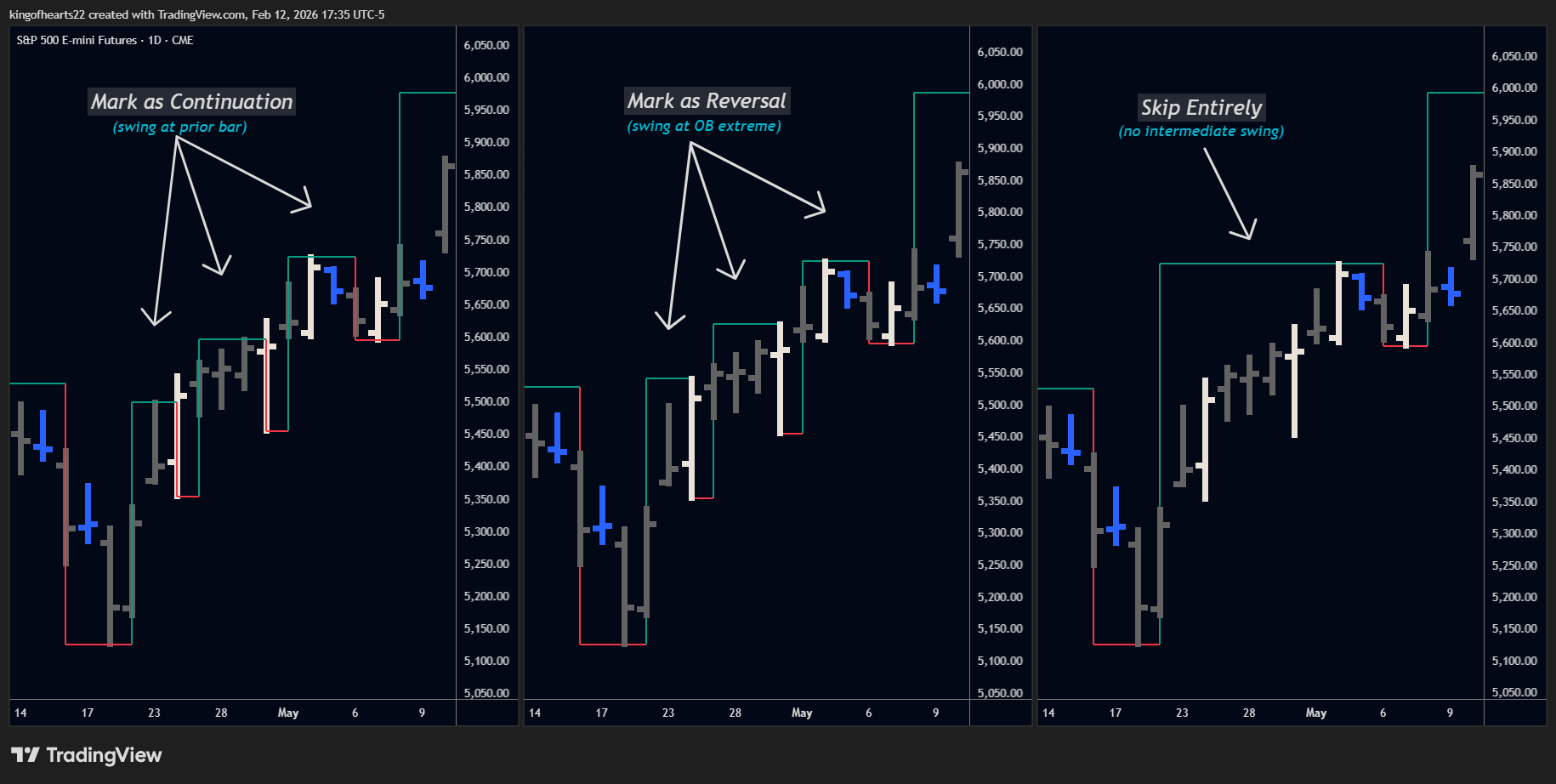 - Mark as Reversal: Places the swing point at the outside bar's extreme when structurally safe